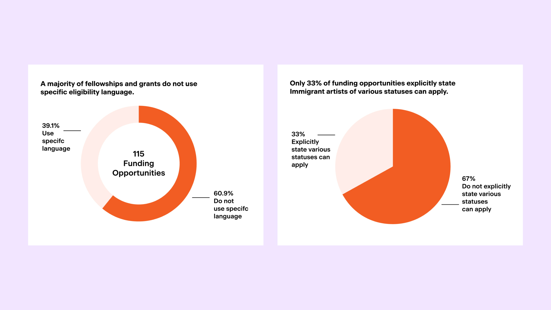 From those 115 funding opportunities available toindividual artists nationwide, only 33% explicitly stateimmigrant artists of various statuses [1] can apply.